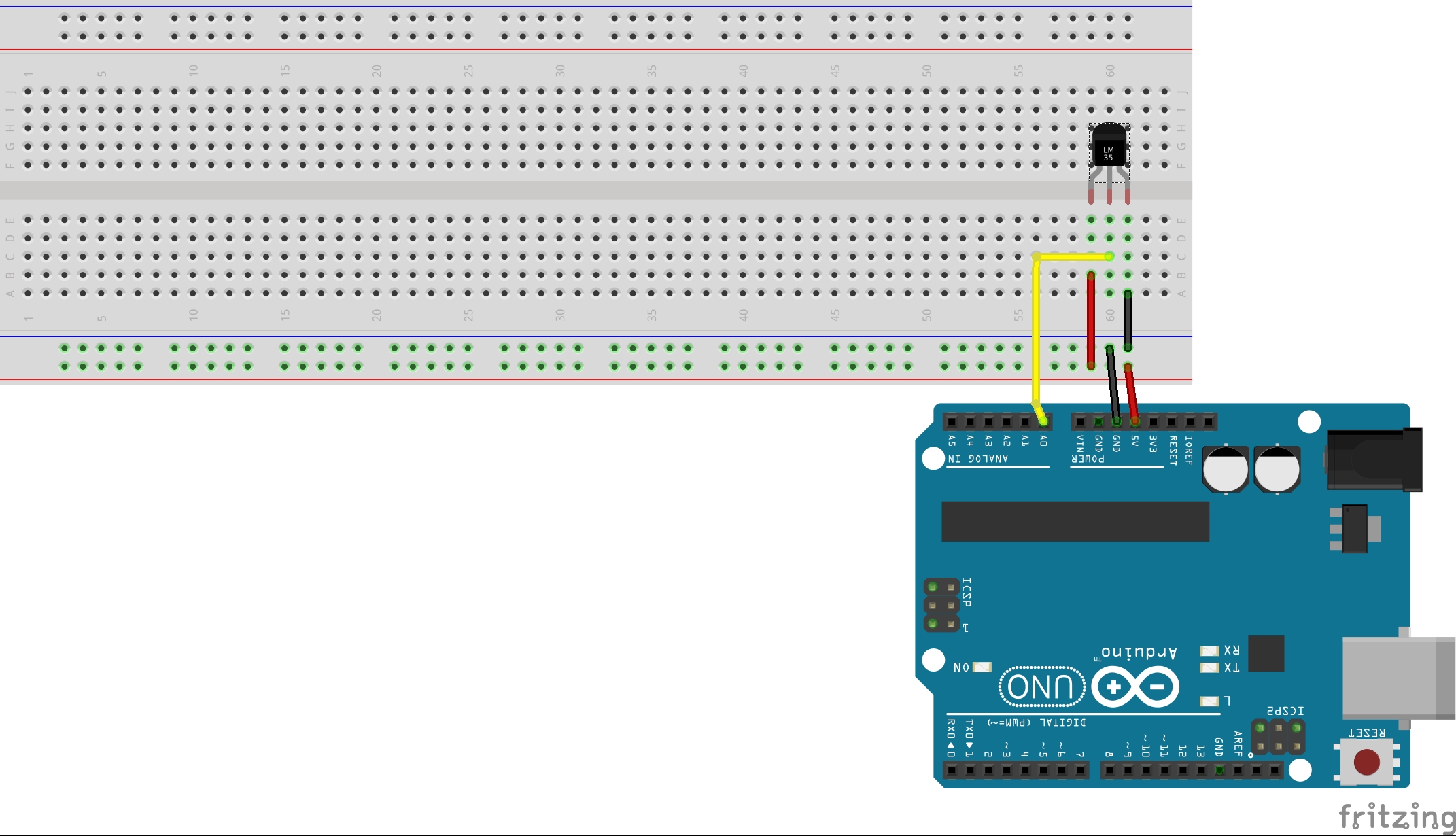 temp = (( analogRead(tempPin) / 1024.0) * 5000) / 10; //formule voor het bepalen van de temperatuur