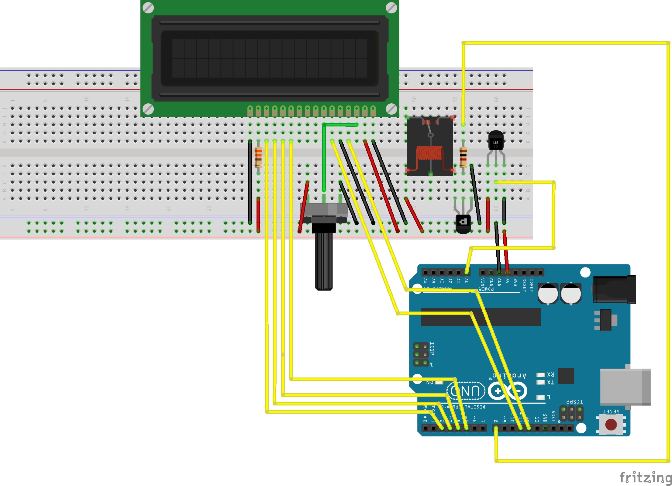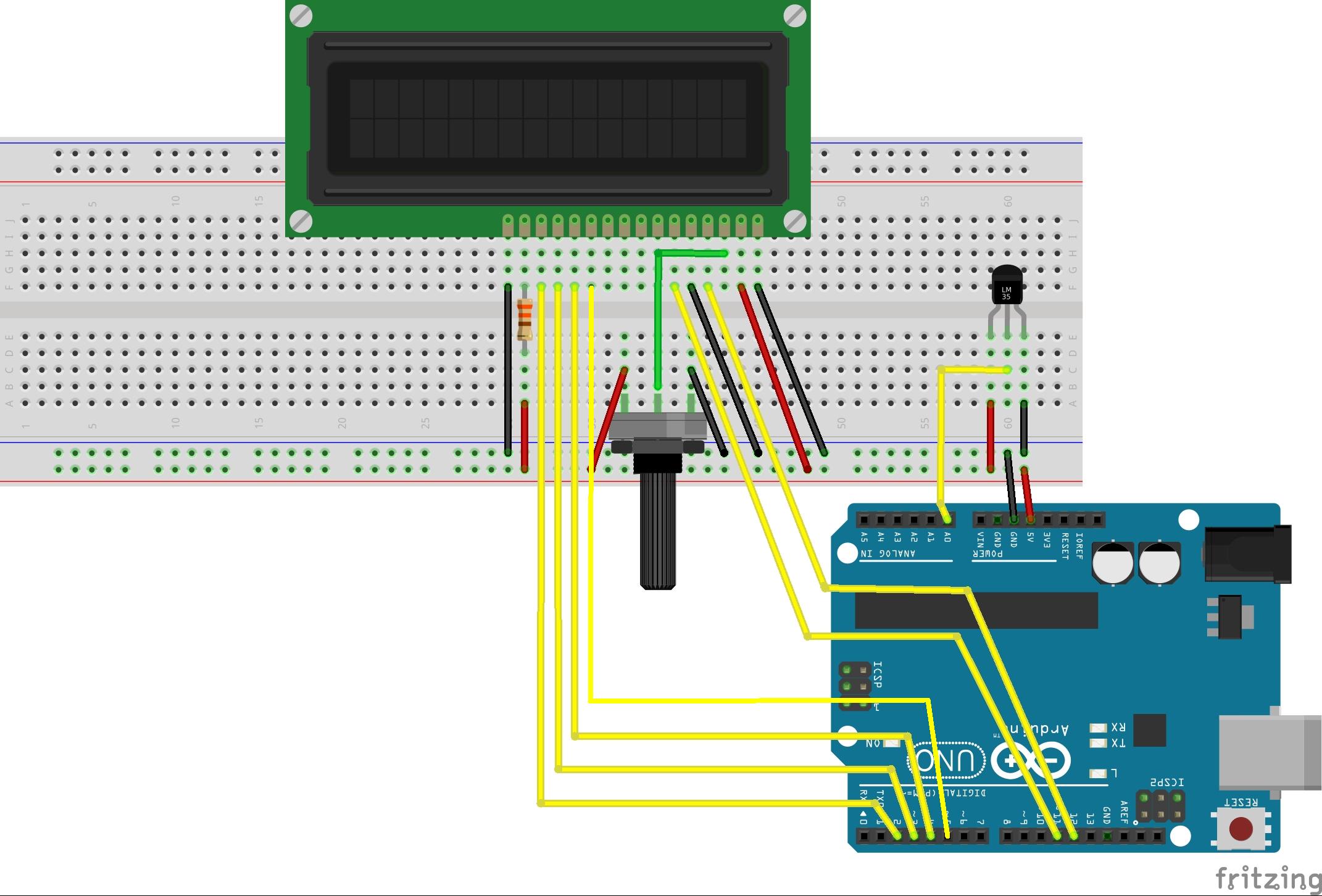 sluit de Arduino aan volgens onderstaand schema: